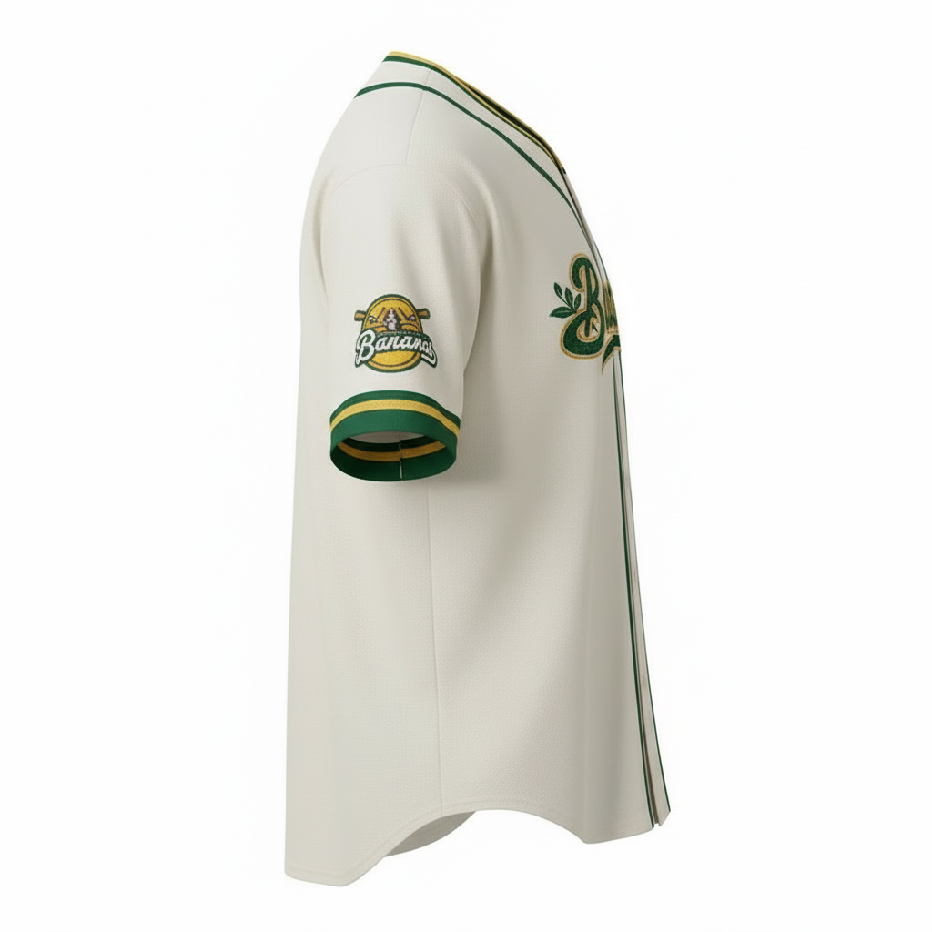 Cream & Green ‘Bananas’ Baseball Jersey Retro Fan Apparel Button-Up Shirt